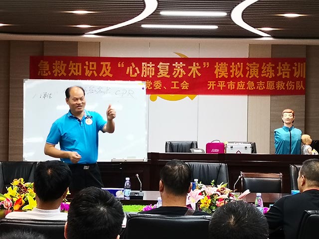 ――記金輝華集團(tuán)開展應(yīng)急知識(shí)培訓(xùn)加強(qiáng)應(yīng)急管理工作,是黨中央、國務(wù)院的一項(xiàng)重要決策,對(duì)有效預(yù)防和應(yīng)對(duì)突發(fā)事件,切實(shí)保障公眾身體健康和生命財(cái)產(chǎn)安全,具有十分重要的意義。金輝華集團(tuán)黨委結(jié)合六月安全生產(chǎn)活動(dòng)月活動(dòng),也為進(jìn)一步普及應(yīng)急救護(hù)知識(shí),提高公司員工的安全防范意識(shí)和自救互救能力,提高公司員工應(yīng)急處理能力,于2019年6月15日在公司會(huì)議室組織開展了現(xiàn)場應(yīng)急救護(hù)培訓(xùn)。此次培訓(xùn)特別邀請到開平市應(yīng)急志愿救傷