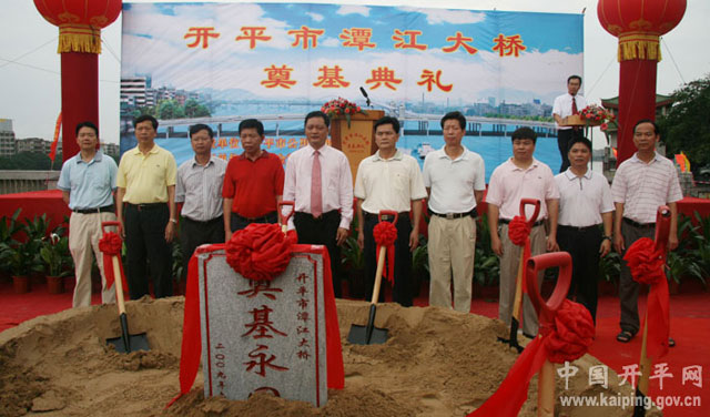 12日上午,開平市潭江大橋奠基典禮在潭江大橋北橋頭舉行,開平市常務(wù)副市長梁和平、潭江大橋改造工程項(xiàng)目領(lǐng)導(dǎo)小組單位領(lǐng)導(dǎo)以及項(xiàng)目設(shè)計(jì)單位、監(jiān)理單位、施工單位代表參加了奠基典禮。潭江大橋是我市城區(qū)建設(shè)時(shí)間最早的大型橋梁之一,是往來長沙、新昌最繁忙的交通樞紐,現(xiàn)在的潭江大橋分兩個(gè)時(shí)期建成,前期部分建于1963年,后期部分建于1978年。經(jīng)過40多年的使用,兩部分的橋梁都存在不同程度的損壞,其中前期建的橋梁
