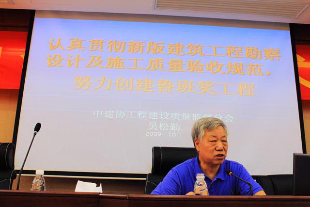 10月25日上午,中國建筑業(yè)協(xié)會(huì)工程質(zhì)量監(jiān)督分會(huì)會(huì)長吳松勤到我司指導(dǎo)“魯班獎(jiǎng)工程”創(chuàng)建工作,為我司工程項(xiàng)目部60多名員工進(jìn)行了一場精彩的學(xué)術(shù)演講會(huì)。圖為:中國建筑業(yè)協(xié)會(huì)工程質(zhì)量監(jiān)督分會(huì)會(huì)長吳松勤演講會(huì)上,吳會(huì)長給我司員工解讀了新的《建筑工程設(shè)計(jì)系列規(guī)范》和《建筑工程施工質(zhì)量驗(yàn)收系列規(guī)范》(下簡稱《質(zhì)量驗(yàn)收規(guī)范》)。指出《質(zhì)量驗(yàn)收規(guī)范》對于施工企業(yè)發(fā)揮自身優(yōu)勢,創(chuàng)建優(yōu)質(zhì)工程,留有很大的空間?!顿|(zhì)量驗(yàn)