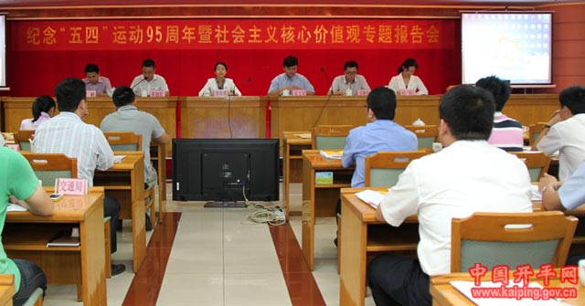 4月30日下午,開平市召開紀(jì)念五四運(yùn)動(dòng)95周年暨社會主義核心價(jià)值觀專題報(bào)告會,加強(qiáng)社會主義核心價(jià)值觀教育,激發(fā)全市廣大團(tuán)員青年繼承弘揚(yáng)“五四”精神。市委常委、市委統(tǒng)戰(zhàn)部部長顏海娜出席會議并為獲獎(jiǎng)單位和個(gè)人頒獎(jiǎng)。 會議現(xiàn)場會議對榮獲“2013...