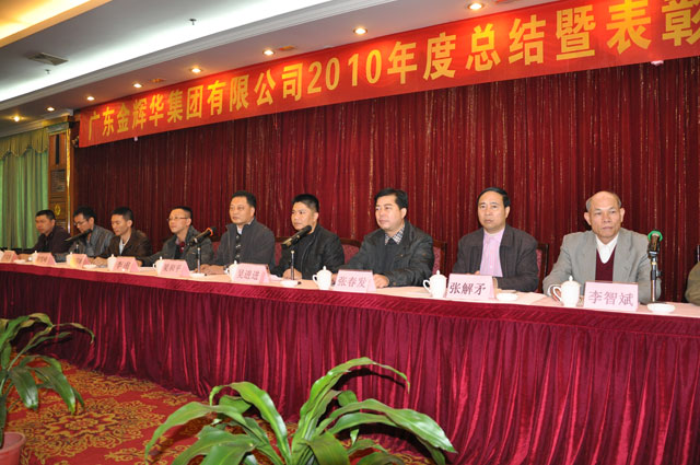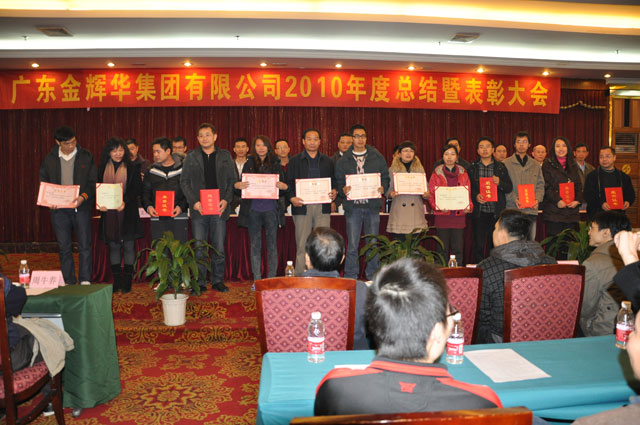 總結大會由集團副總裁陳維民主持。會上,集團董事長李甫發表新年致辭,總裁張國球作了《金輝華,滿懷豪情再出發》的2010年終總結及2011年工作計劃匯報講話,重點對企業申報特級、強化團隊建設、進一步明晰、健全和完善業務工作流程和抓緊科研項目實施,對2011年生產經營工作進行了安排和部署。黨委書記張解矛和開平國泰康庭置業有限公司總經理周雪峰分別作了工作發言。最后,開平市住房和城鄉建設局局長吳進進對金輝華集團一年來的工作作了肯定、贊揚和勉勵,并祝金輝華集團在新的一年團結一致,揚起創新的風帆,在和諧發展的同時,2011年勝利沖刺特級資質企業。