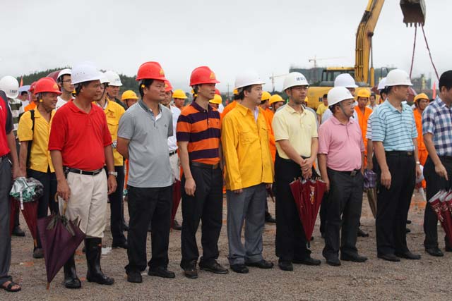 集團公司董事長張國球(左三)參加臺山新寧體育館開工儀式