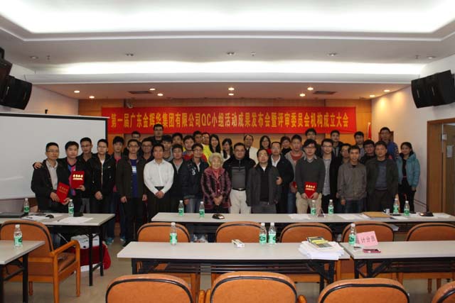 為進一步提升我集團公司工程建設質量管理水平和企業市場競爭力,激勵我司員工積極參與項目質量管理與創新活動,配合集團公司每年度的申報省(部)級、國家級質量管理小組稱號,并建立集團公司工程建設質量管理小組活動的長效機制,進而推動集團公司的工法課題的采集和編制工作。2012年12月18日,第一屆廣東金輝華集團有限公司QC成果活動發布會暨評審委員會機構成立大會在開平輝華樓會議室舉辦,總工室主任陳力夫、工程管理中心主任張解矛、副主任余志文、技術中心主任詹前進參加了發布會,本次發布會特邀廣東天竟建設有限公司總工盛克亞、項目經理張國勝、高級工程師樊代清三位QC質量管理專家擔任評委。