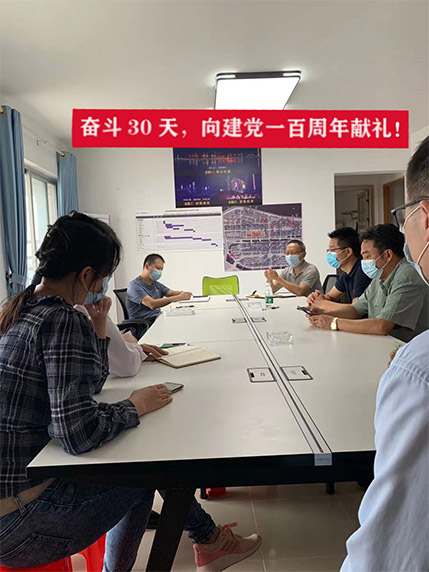 本工程自開(kāi)工以來(lái),面對(duì)工期緊張、新冠疫情沖擊、組織協(xié)調(diào)工程量大等諸多困難和挑戰(zhàn),項(xiàng)目部全體人員迎難而上,防疫情,保復(fù)工,早晚輪休,挑燈夜戰(zhàn),連夜值守,以最快速度推進(jìn)項(xiàng)目建設(shè)。經(jīng)過(guò)金輝華人的不懈努力,廣州“七一”主題燈光演繹于6月28日順利完成了彩排聯(lián)調(diào),保證了慶祝建黨100周年燈光表演的精彩呈現(xiàn)。廣州琶洲西區(qū)24棟寫(xiě)字樓外墻一齊亮起燈光,放映動(dòng)畫(huà),與廣大市民一起回顧百年黨史,共迎中國(guó)共產(chǎn)黨建黨100周年。