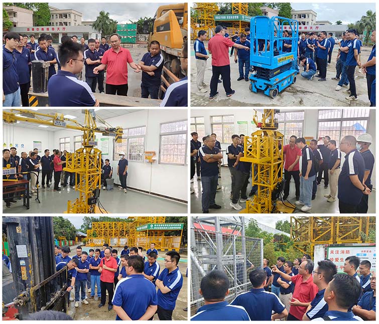 此次培訓(xùn)采取了“理論講解面授+實訓(xùn)實操演示”的形式。培訓(xùn)中,講師結(jié)合朱村基地的設(shè)施設(shè)備,對汽車吊、施工升降機、塔式起重機和叉車、高處作業(yè)平臺安全管理技術(shù)進行全方位地教學(xué)講解和操作演示,切實提升項目管理人員的機械管理專業(yè)技能水平、綜合素質(zhì)和安全防范理念。