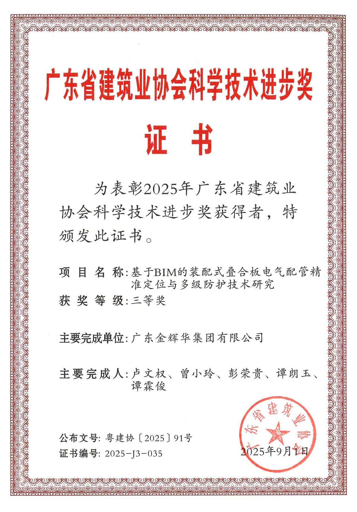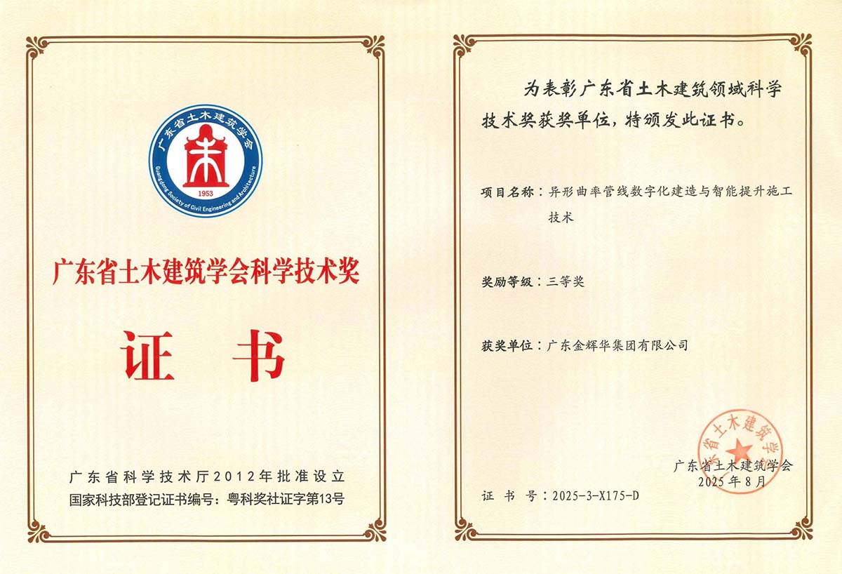 此次多項(xiàng)成果榮獲行業(yè)重要獎(jiǎng)項(xiàng),是對(duì)我們過(guò)去科技創(chuàng)新工作的肯定,更是激勵(lì)我們不斷前行的動(dòng)力。未來(lái),金輝華集團(tuán)將繼續(xù)秉承科技引領(lǐng)、創(chuàng)新驅(qū)動(dòng)的理念,緊盯行業(yè)前沿技術(shù),不斷加強(qiáng)創(chuàng)新能力。我們將致力于打造更多具有核心競(jìng)爭(zhēng)力的科技成果,為建筑行業(yè)的發(fā)展注入更多的金輝華智慧。