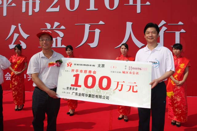 3月3日上午,2010年開平市慈善公益萬人行活動起步儀式在城市北廣場舉行。為支持慈善事業,我集團公司在慈善萬人行活動中向開平市慈善會捐贈了一百萬元,被表彰為第一批慈善事業突出貢獻的先進單位。